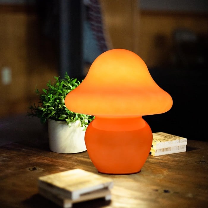 Orange Glass LED Mushroom Table Lamp